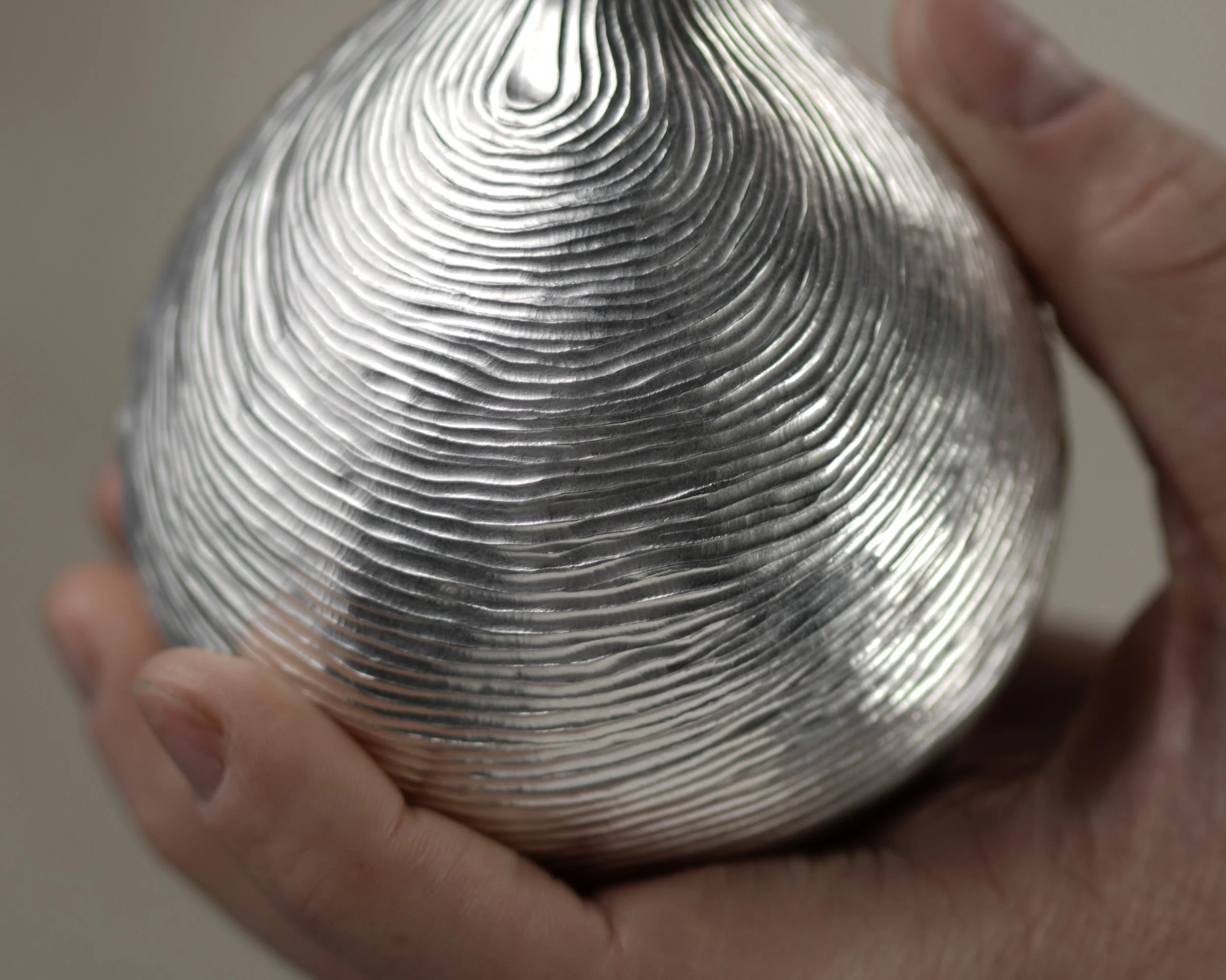 ‘Crafting sculptural silverware enriched with intricate surface pattern using the traditional metalworking techniques of raising and chasing.’ ‘Chordata’ Tulip Vase Commissions Shop Follow Hannah on Instagram View fullsize View fullsize View fullsize View fullsize Follow
